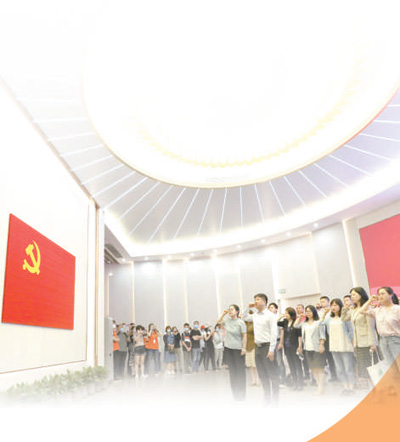 党员在中共一大纪念馆里重温入党誓词。 新华社记者 刘 颖摄 |