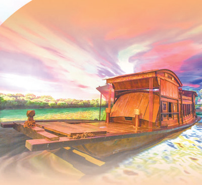 浙江嘉兴南湖革命纪念馆内的红船模型。 新华社记者 徐 昱摄 |